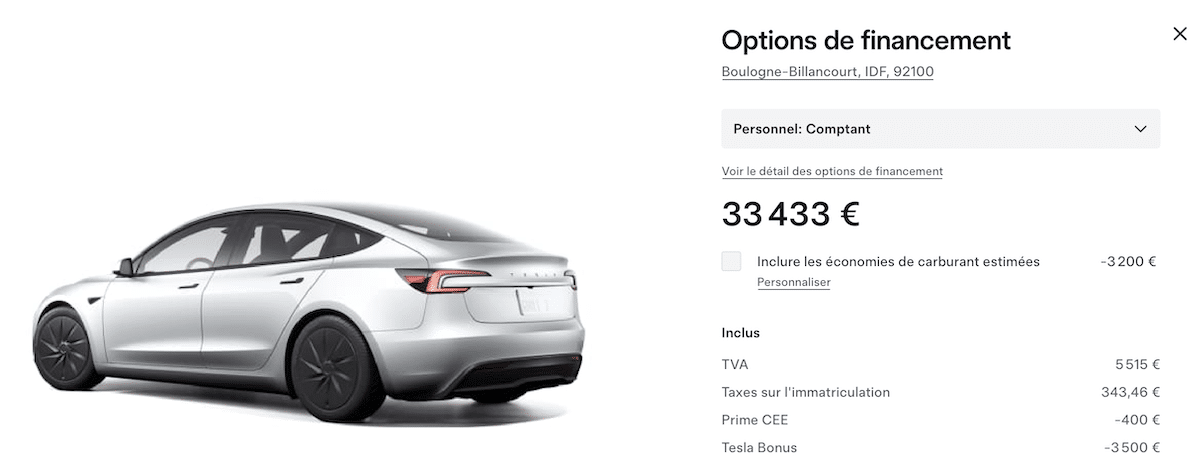 - Model 3 Standard : 33 433 €